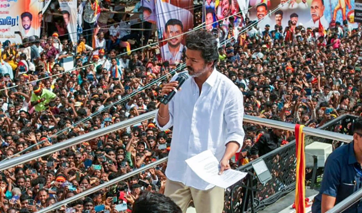 গতকাল শনিবার সন্ধ্যায় কারুর-ইরোড মহাসড়কের ভেলুসামাইপুরামে বিজয়ের জনসভা অনুষ্ঠিত হয়। অনুমতি ছিল প্রায় ৩০ হাজার লোক সমাগমের, তবে স্থানীয় গণমাধ্যম বলছে, ৬০ হাজারেরও বেশি মানুষ সেখানে ভিড় করেন।